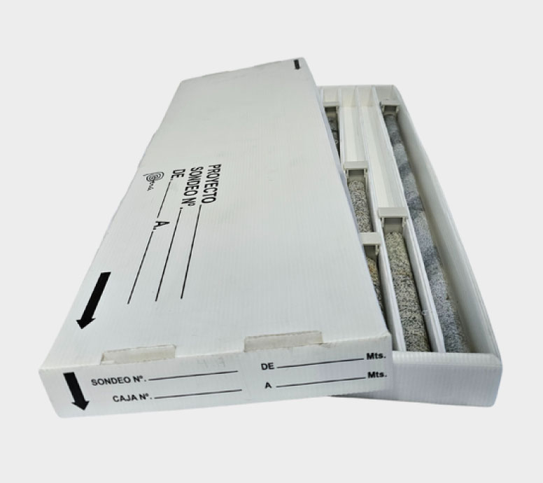 Este producto está diseñado para facilitar el almacenaje de muestras (testigos) resultado de las exploraciones mineras. Sistema práctico, económico, seguro y muy fácil de transportar.